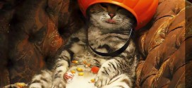Nous vous avions déjà montré un chat déguisé en poule, en voici un qui porte un déguisement de poussin … Et encore, nous ne savons pas trop ce que c’est comme déguisement, …